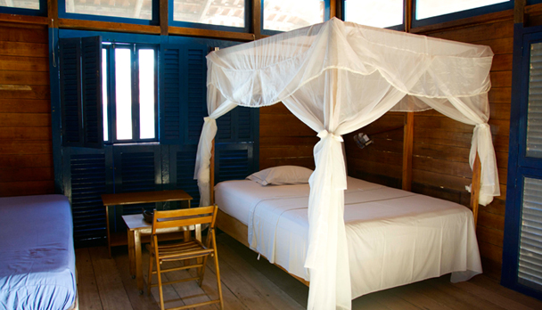The lodge is simple but very comfortable and beautiful. It is a floating lodge, constructed with local woods and is connected by wooden platforms.