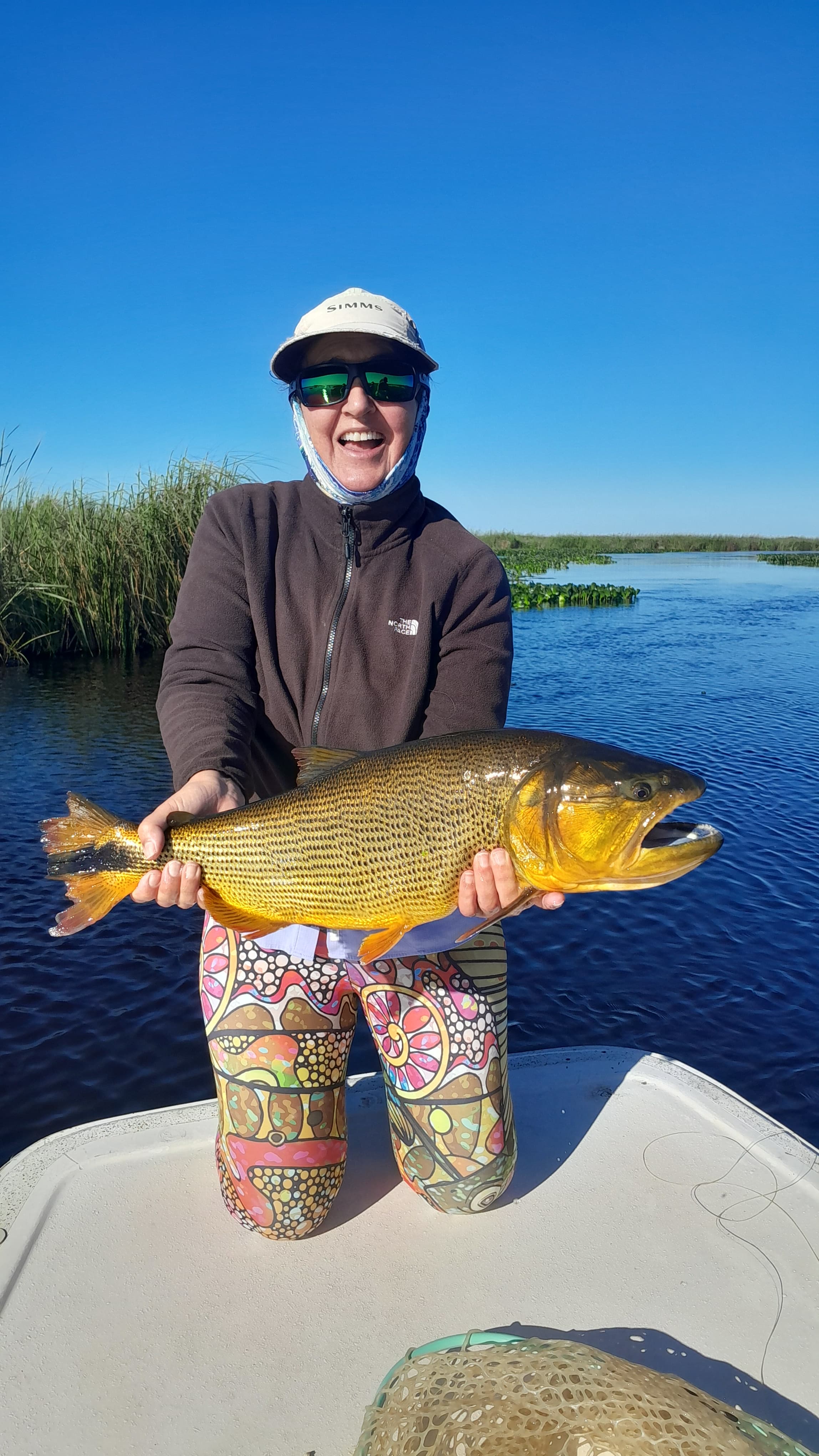 ¡Excelente viaje, Daniel! Nos vamos a Salta/Cafayate a hacer turismo. La experiencia en Iberá fue excepcional. SET ha dedicado muchísimo esfuerzo y dedicación a cada aspecto de la operación. La hospitalidad y la gastronomía (incluso en el campamento más rústico y básico) fueron de primera. El guía de Itatí, que sabíamos que sería genial, así que no hubo sorpresas. Los dos últimos días de pesca fueron lentos en Laguna Trim. ¿Luna llena en los últimos días o alguna otra condición? Quién sabe (Nico dijo que la falta de viento y el sol brillante nunca ayudan). Así que no pescamos nada más grande que los 69 cm (¿6 kg?), pero pescamos cuatro de un tamaño cercano. Vimos algunos peces más grandes comiendo en medio de las lagunas o canales anchos, pero no los encontramos con mosca. Pero no me quejaría en absoluto de la pesca. Pasamos unos días excelentes y nos divertimos mucho. Mi esposa lo disfrutó muchísimo y sería algo que volveríamos a hacer con gusto en algún momento. Por suerte, pudimos tomar el vuelo chárter de regreso desde Concepción, ya que el campo (pista de aterrizaje) estaba bastante seco. El costo adicional del chárter vía Bella Vista no parece justificar la pena, ya que es mejor conducir desde Corrientes y tomar un vuelo comercial. Dos grupos de estadounidenses lo hicieron y ahorraron dinero. Con solo Diane y yo a bordo del chárter, dudo que valiera la pena para SET.