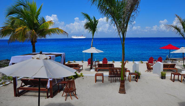 Located opposite to Playa del Carmen in the Riviera Maya, Cozumel stands out as a touristic island. There is an international airport on the island and the access from the continent is very easy, as there's a ferry service offered every hour leaving Playa del Carmen. The journey takes a bit more than half an hour. Cozumel island, rich in Mayan ruins and heritage, is a famous scuba-diving destination for the transparency of its waters.