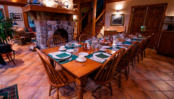 The main lodge has four double occupancy bedrooms with double beds, private baths and screened porches. The Lodge can accommodate 12 fishing guests. The private guest house has two double occupancy bedrooms with double beds, private baths and screened porches. There is a private living room with a fireplace and bar area. The meals: gourmet breakfasts, lunches, dinners, hors d'oeuvres and snacks are included. We cater to guests with special dietary requirements. Guests are welcome to bring their own alcohol. The Lodge supply all ice, mix and drink ingredients. Wine is included with dinner. The liquor store in town has a very nice selection of beer, liquor and wine. Services: telephone, fax, two computers and high-speed Internet access with wireless connection are available for the guests.
