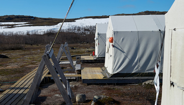Guests at the camp lodge sleep in big tents (18 m2) with wooden floor and 2 beds. All tents have heating, bed sheets and a small wardrobe. There is a main tent for the dinning room and a small bar to hang out, also showers are in a separate sector outside the sleeping tents. Electricity is 220 V and has limited schedule. All meals are included as well as non alcoholic beverages, lunch is on the river.