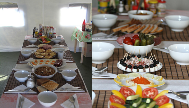 Dinner is served at 8 pm and at 11 pm lights are off. Each day the guides rotate pools according to previous group organization.