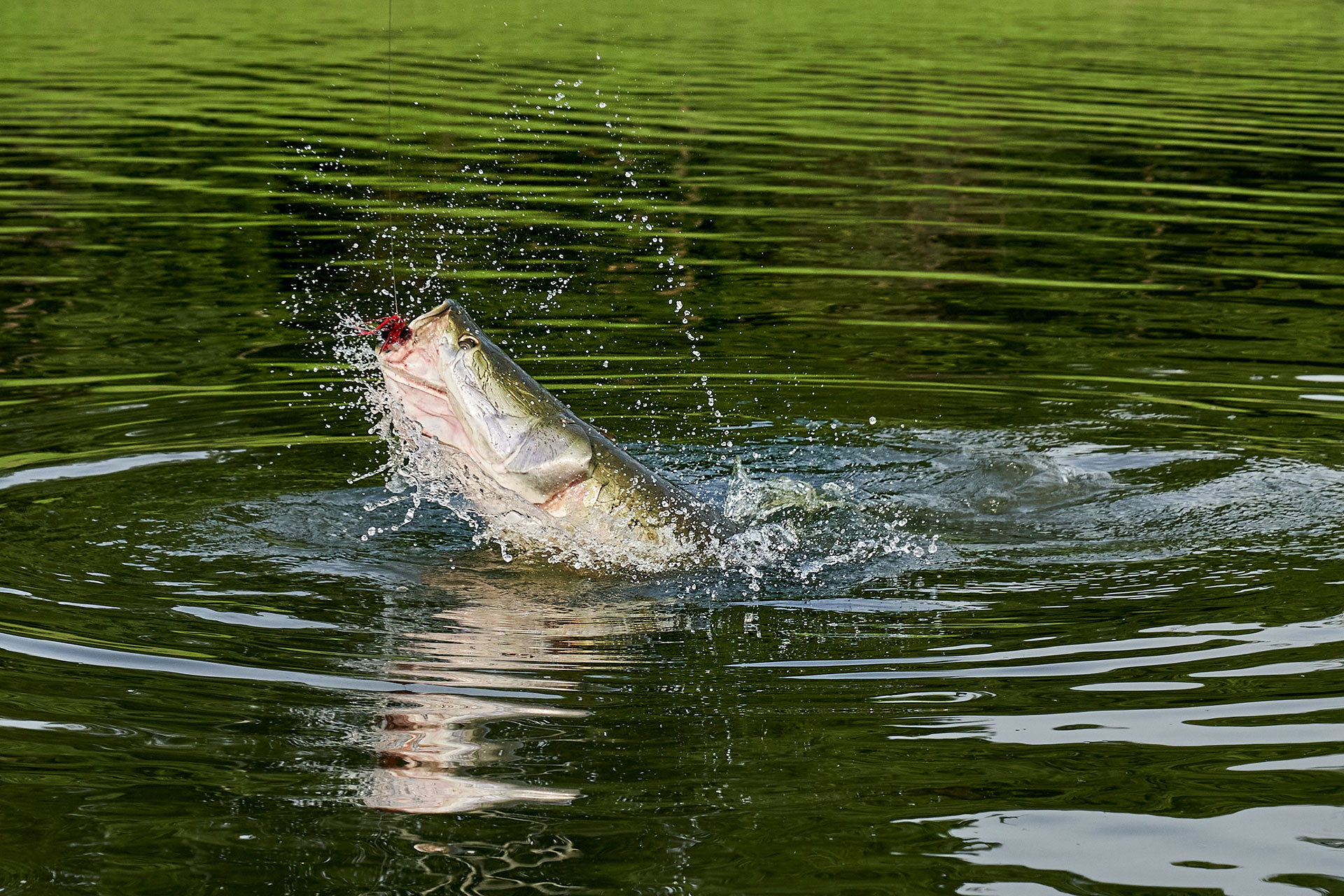 The Arapaima has a closely resemblance to a freshwater tarpon and can grow up to 400 pounds. When hooked, they explode in aerial displays, take off on long runs, and surrender only after lengthy battles. The fish are often seen gulping air from the surface, thus offering sight casting to singles, pairs, or even schools of fish.
