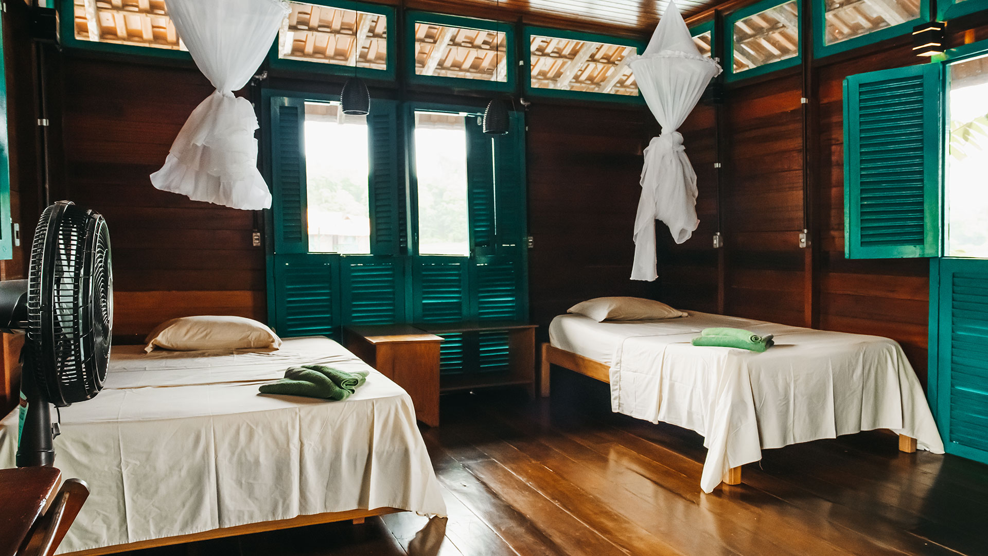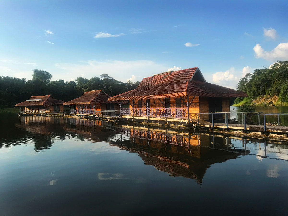 The lodge is simple but very comfortable and beautiful. It is a floating lodge, constructed with local woods and is connected by wooden platforms.