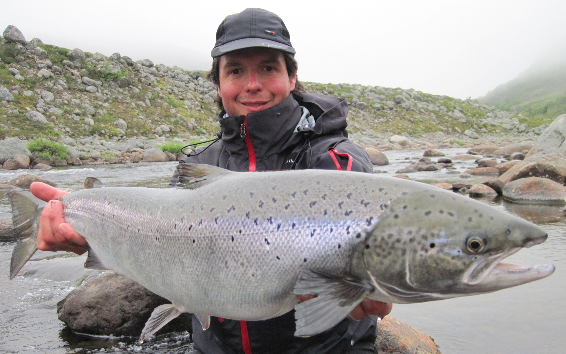 The beautifully situated river Sidorovka is one of the most isolated and scenic on the northern side of the Kola peninsula. From the source on the tundra it flows into the Barents Sea in between it´s more famous neighboring rivers Varzina and Eastern Litza. The first salmon enter the streams in early June. Since there are no large holding pools on the lower stretches fish will make the run up stream despite high and cold water. The flow is moderate but with fast flowing rapids and deep cut pools. Don´t let the size of the river foul you! Statistics show a surprising number of salmon on + 100 cm! The average weight in June and beginning of July is a healthy 6-8 kg, a brutal little river!