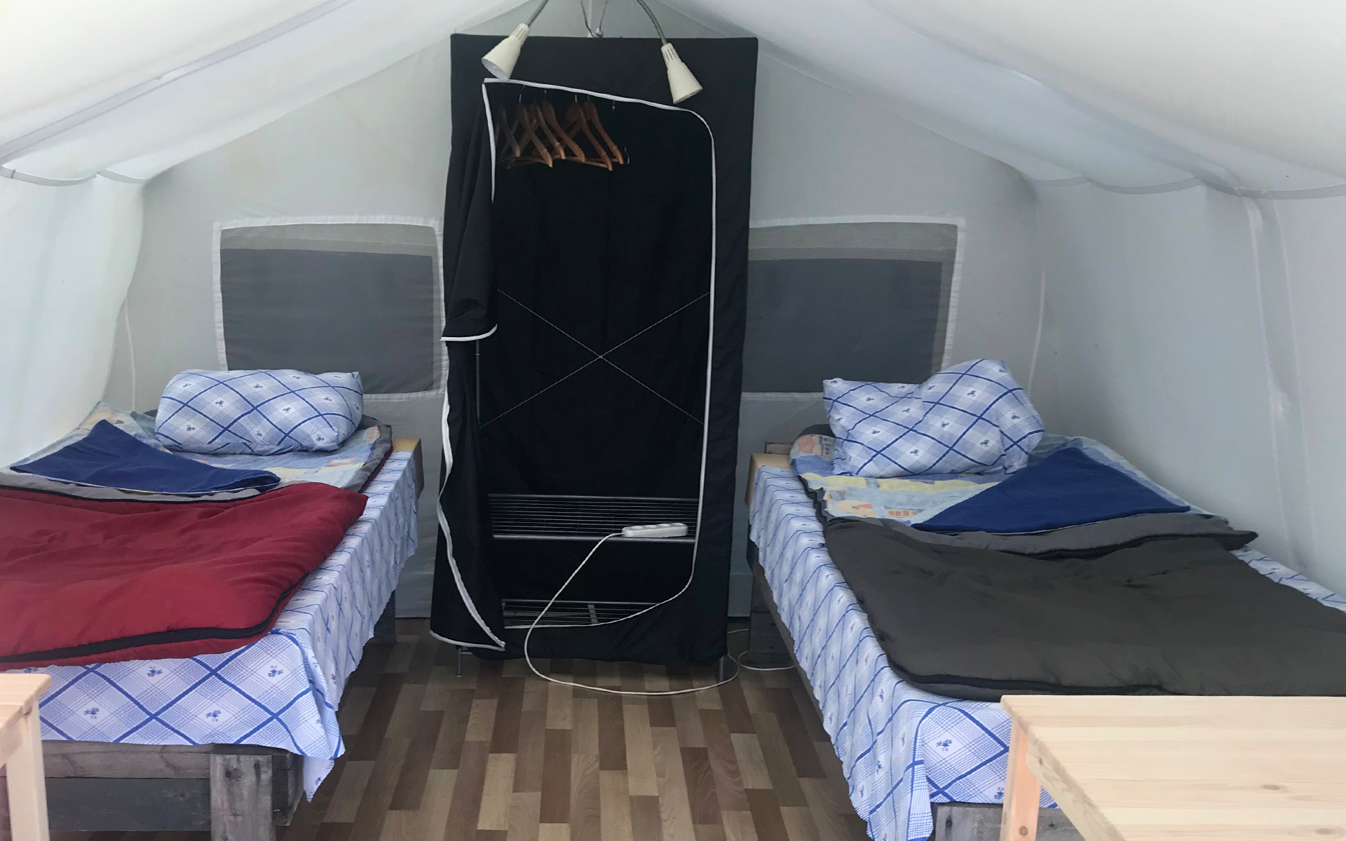 The camp is situated in a very picturesque deep canyon of Sidorovka river. The accommodations consist of a group of three large double tents, with full-size beds, mattresses and linens, small wardrobe for dress holding, kerosene-combustion heater. The camp has a tent- restaurant with small bar, drying room for gear, daily hot shower and a free mini sauna 1-2 Times a week.