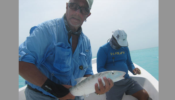 We caught a lot of bones, some good sized and all fighters. We both hooked into big tarpons right off the beach and I boated my first big tarpon. We hunted for bones and permit and were successful with the first and tantalized by the second. Sean's comment was "I would like to come back and do nothing but stalk big permit". You may be hearing from us again.