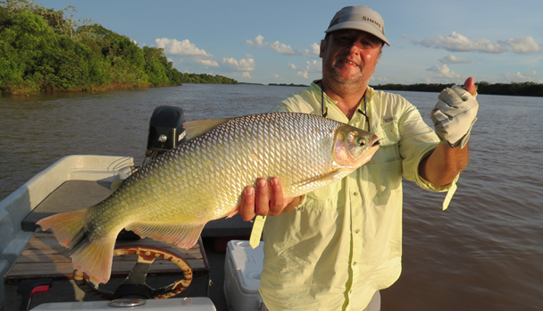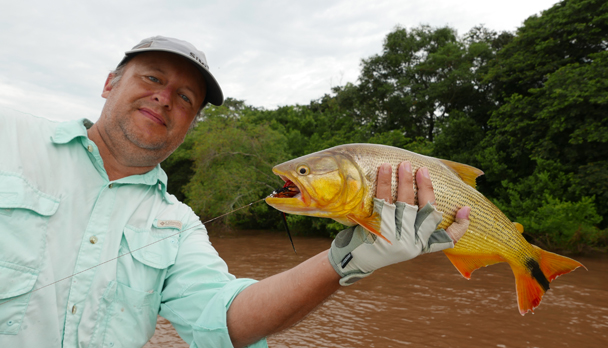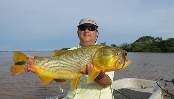 It was a fantastic trip, the lodge on the Parana was top! In terms of food, facilities and wine is was first class. Despite the massive flood waters the guides really did an amazing job, we battled quite a lot but probably landed 20 fish each of us (3 anglers) in 4 days; both big pira pita and golden dorado. Gavin and myself got one of around 10 pounds and lost a really big one very close to the boat (I can still hear from South Africa the guide's cursing!!!).