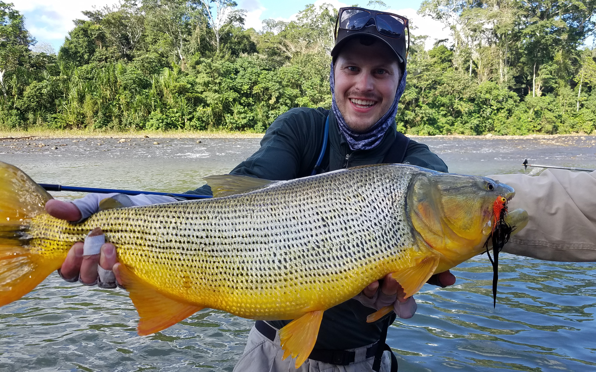 Our three sons and I have recently returned from an awesome fly fishing trip in the Amazon basin in Bolivia. We were in a very remote area of jungle and had a blast seeing a wide variety of animals........caiman (crocodiles), jaguar, tapir,monkeys, parrots, macaws, butterflies, snakes, lizards, frogs and toads, beautiful (but strange) insects and caught our targeted fish.....Golden Dorado.