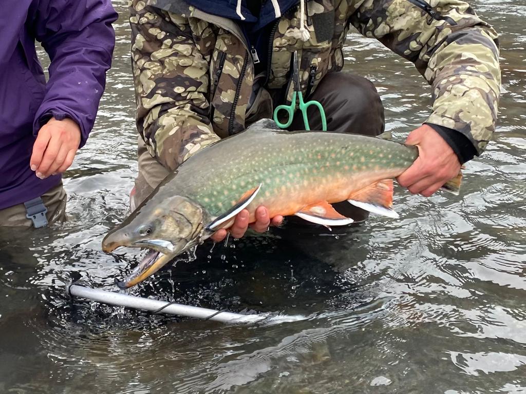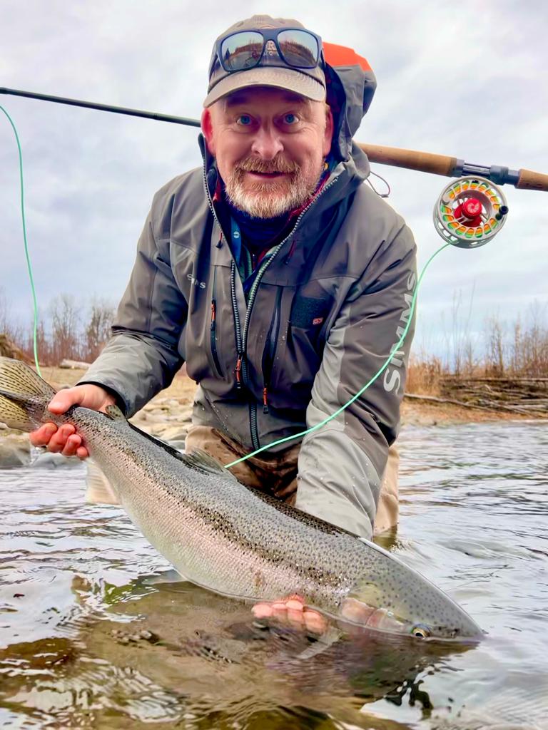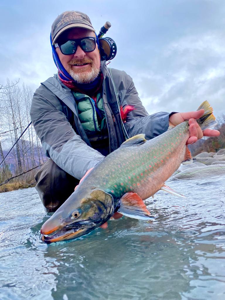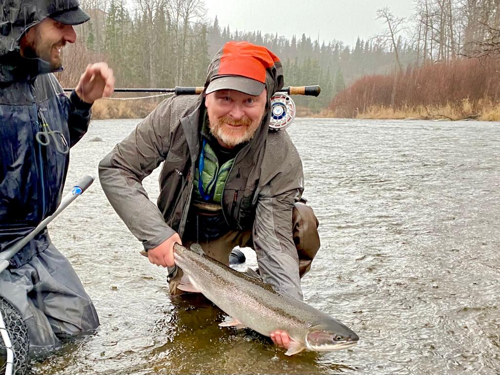 As to the fishing, variety was the first thing to highlight. We fished 4 very different rivers over the trip – from small spring creeks to big classic steelhead water (wide, fast flowing and turquoise glacial water). Getting to fishing runs were via a mix of drift boat, hike and helicopter. Target species beyond steelhead were resident rainbows, silvers/coho and dolly varden. We caught decent steelhead from 5lb - 13lb fish, from bright chrome hens to coloured up bucks. Each session targeting steelhead we were both successful, although when the fish were reluctant to come to a swung fly (eg cold water, sunshine), we were always able to pick up fish nymphing with the bead/egg pattern. We also managed to have success swinging flies to big hot rainbows (although unfortunately we didn’t manage to get a trophy over 30”) and trophy dolly varden in all their glorious colours. By the end of the week my wife had picked up steelhead and resident rainbows on the swing, a testament to the excellent instruction from the guides.